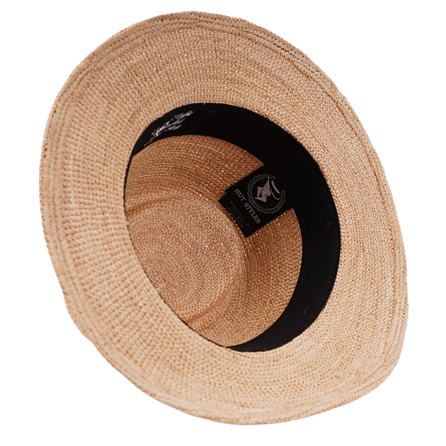 auch Unisex tragbar. Hochwertiges, leichtes Raffia-Stroh. Klassischer Fedora - Breite Krempe und Fedora-Krone.