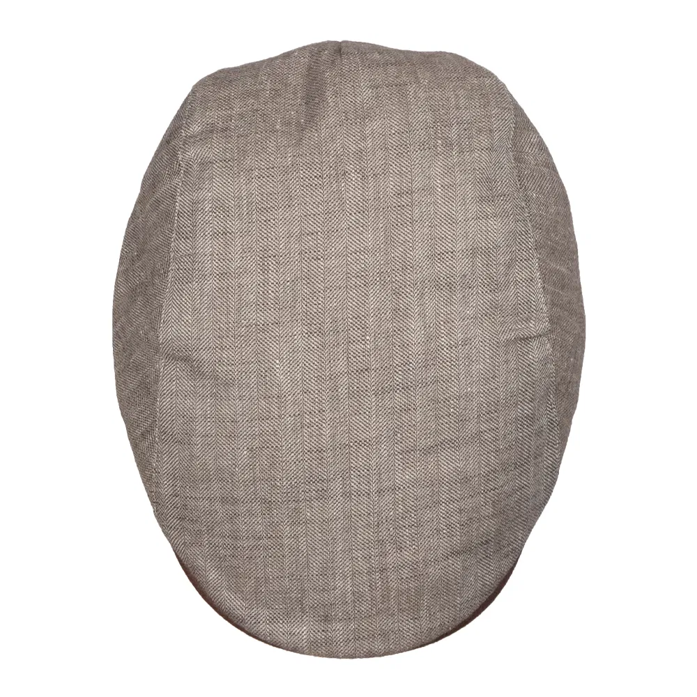 Klassische Herren Schiebermütze aus leichtem Leinen in beigegrau und braunem Schirm.