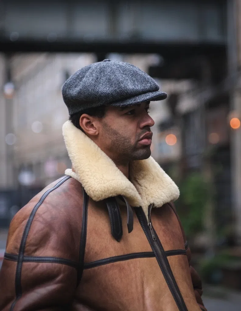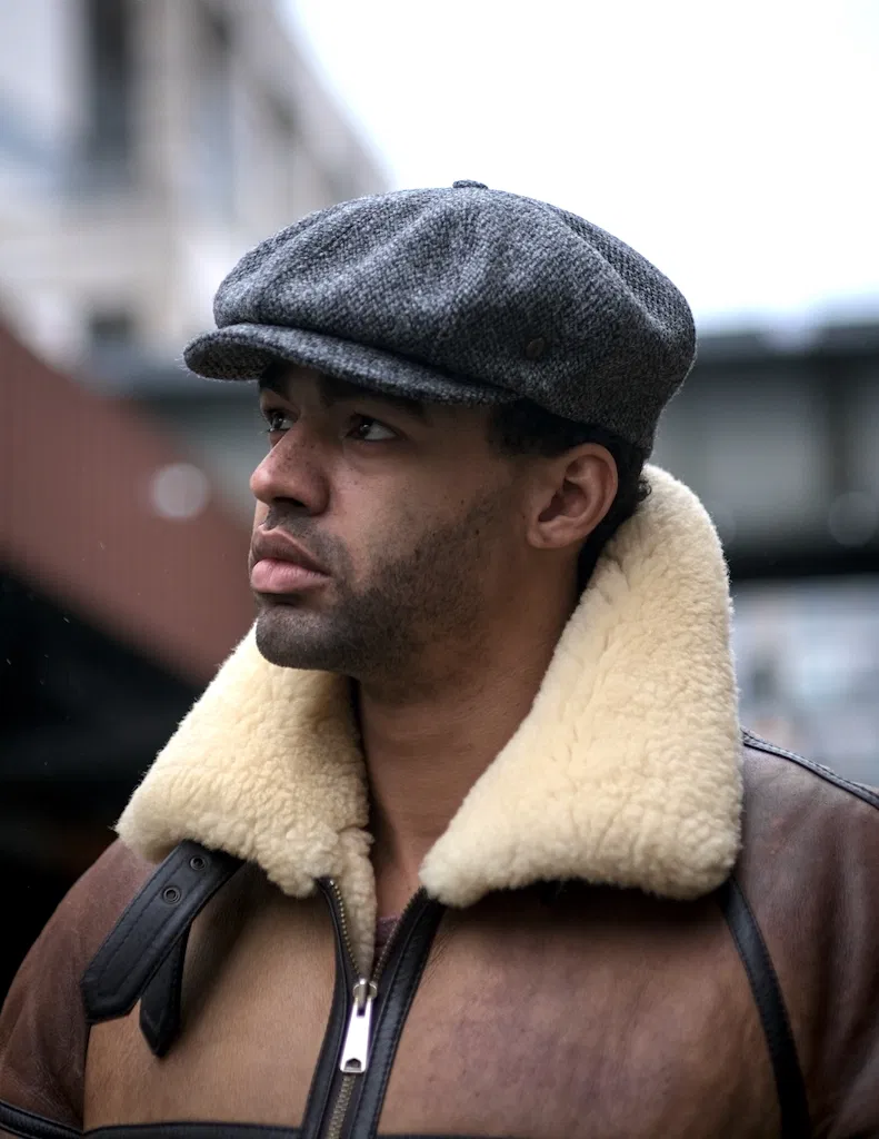 Die klassische Ballon-Schiebermütze aus Harris Tweed. Passend zu jeden klassischen Rockabilly Look oder zu einer eleganten Garderobe mit langem Mantel. Trage sie klassisch gerade oder leicht zur Seite gestulpt. Pflege sie, indem du das innen liegende Schweißband regelmäßig auswischst und die Mütze mit einer Folie zum Schutz vor Staub abdeckst. Für die optimale Passform muss man die Mütze beim aufziehen etwas platt drücken, da die Merinowolle winddicht ist.