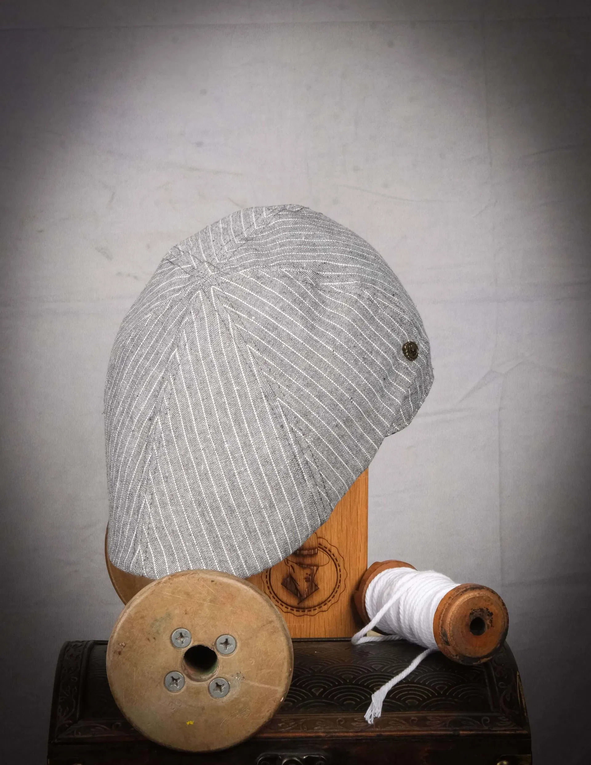 Elegant- sportliche Schiebermütze aus Baumwolle und Leinen. Sie zeichnet sich durch eine schöne Nadelstreifen Optik und einer genauen Passform aus.